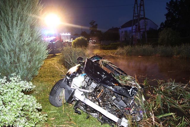 Nocna wyprawa trzech mężczyzn i nieletniej kobiety zakończyła się w stawie.